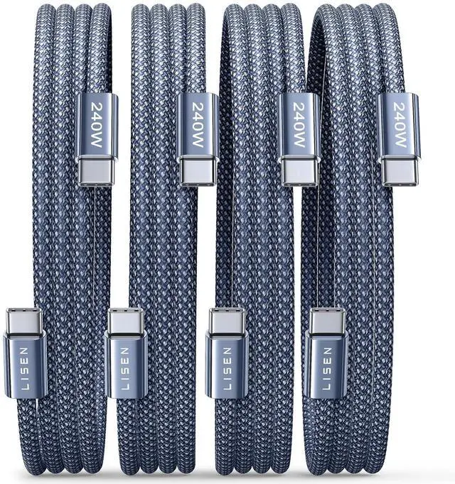 240W for USB-C to USB-C Woven Charge Cable, 4-Packs [6.6/6.6/6.6/6.6FT] for MacBook Air Pro M5 M4 Charger Cable for iPhone 17 Air 16 Pro Max, iPad Air Pro
