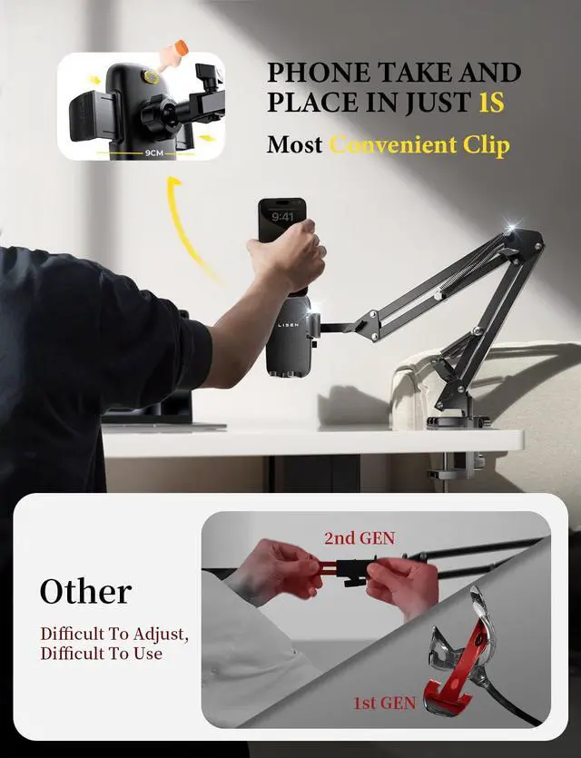 ![Alt view image 4 of 7 - Gooseneck Phone Holder for Bed Desk [3rd Upgrade] Cell Phone Stand for Desk Bed Gaming Accessories,Gifts for Men Mom Senior Tech Mount for Recording Filming Laying Down Flexible Magic Arm Clamp](https://c1.neweggimages.com/productimage/nb640/BJZJD2511110Z6RVXD4.jpg)