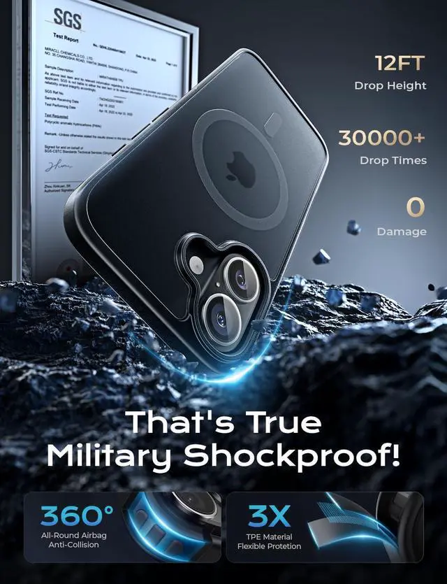 Certified Military-Grade Shockproof Protection Built to surpass military-grade (MIL-STD-810H) standards, these phone cases for iPhone 16 offer ultimate shockproof and drop-proof defense. The engineered structure protects your iPhone 16 from accidental drops, collisions, and everyday impacts.