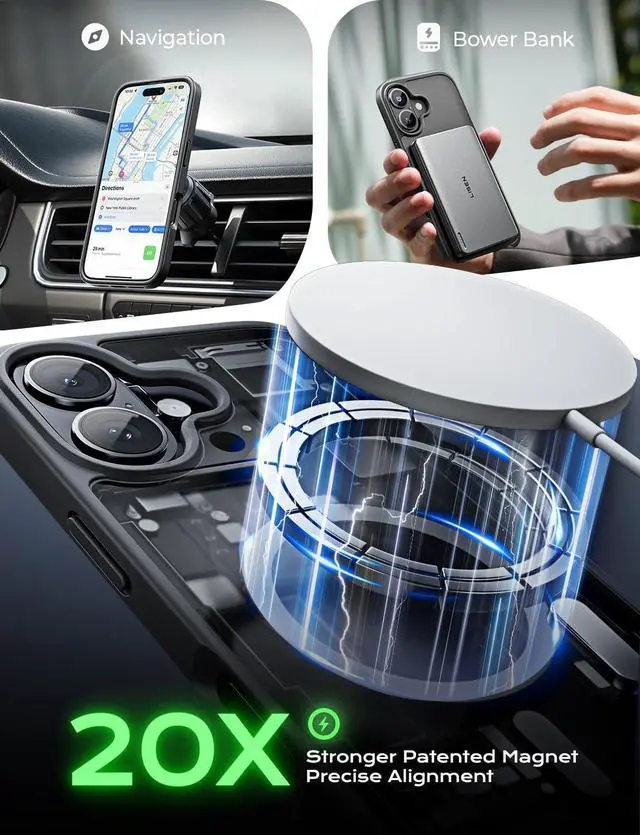 [18 Aligned N52 Magnets: 30% Stronger Magnetic Force] Integrated with 18 precisely aligned N52 neodymium magnets, these phone cases are designed for iPhone 16 and generate a magnetic force over 30% stronger than most standard alternatives. They ensure an ultra-secure connection for MagSafe chargers and accessories, delivering both fast wireless charging and unwavering stability.
