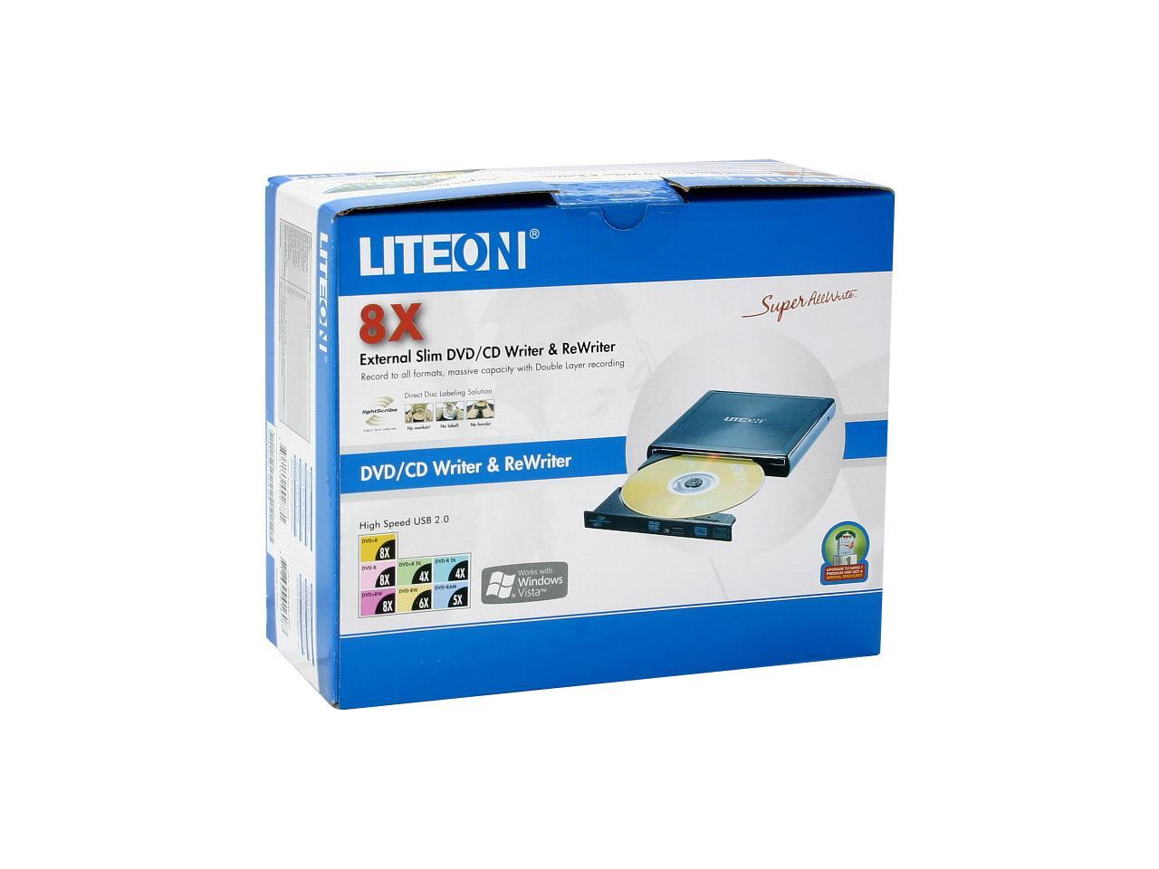 LITE-ON USB 2.0 External Slim 8X DVD Drive Model DX-8A1H-05