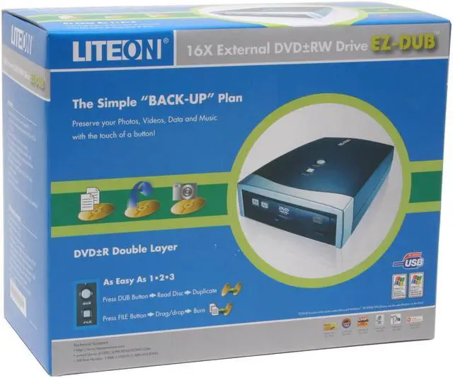 LITE-ON Black 16X DVD+R 8X DVD+RW 4X DVD+R DL 16X DVD-R 6X DVD-RW 16X DVD-ROM 48X CD-R 24X CD-RW 48X CD-ROM 2M Cache USB 2.0 External EZ-DUB DVD-Dual Drive Model SOHW-1673SU