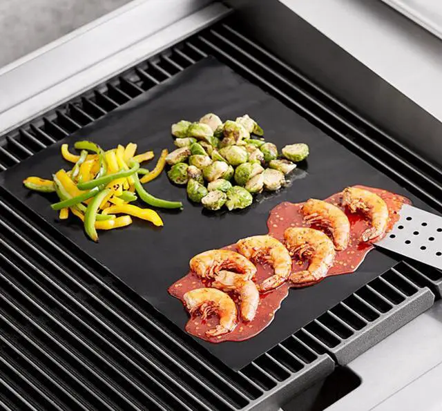 Liteaid The BBQ Grill Sheet 2Pack is a versatile and ecofriendly grilling accessory that enhances your cooking experience. These reusable sheets are a sustainable alternative to aluminum foil offering easy installation and removal. Cleaning is quick and effortless requiring no scrubbing so they are ready to use again in no time. The sheets allow food to retain authentic BBQ grill marks while preventing small items from falling through the grill. With a heat resistance of up to 500F 260C they help keep your BBQ and oven clean without leaving residual odors or flavors. Safe for your family these sheets are SGS and FDA approved providing reliable performance for every meal.