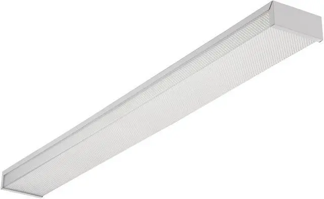 Lithonia Fluorescent Utility Wraparound Light Fixture - 2-light fluorescent wraparound fixture featuring a clear acrylic lens with pyramidal design which minimizes ceiling shadows and sharp contrasts. 5.12 In. W. x 2.42 In. H. x 48.48 In. L. Electronic ballast. Requires (2) 32W T8 light bulbs, not included. 120V/60Hz/0.80A. Starts reliably at 0 Deg (degrees) Fahrenheit/-18 Deg Celsius. Energy Star qualified. - Size: 5.12 In. W.x 2.42 In. H. x 48.48 In. L., Number of Bulbs: 2 Bulbs, Bulb Type: Fluorescent, Bulb Shape: T8, Base Type: Bi-Pin, Bulbs Included: No, Wattage: 32W, Color: White, Material: Acrylic, Voltage: 120V, Weight: 8 Lb., Hardware Included: No, UL Listed: Yes, Warranty: 1-Year, Pkg Qty: 1, Package Type: Box