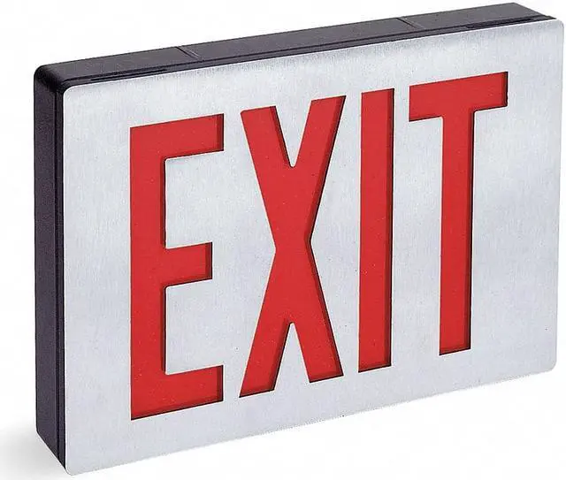 Exit Sign, Letter Color Red, Number of Faces 1, Directional Indicators - Emergency Lighting and Exit Signs Universal Field Selectable Chevrons, Lighting Technology LED, Housing Material - Emergency Lighting and Exit Signs Aluminum, Housing Color - Emergency Lighting and Exit Signs Black/Silver, Emergency Back Up Battery No, Battery Chemistry Not Battery Powered, Voltage - Emergency Lighting and Exit Signs 120/277, Number of Lamp Heads 0. This item has been restricted from sale in the following state (s): []