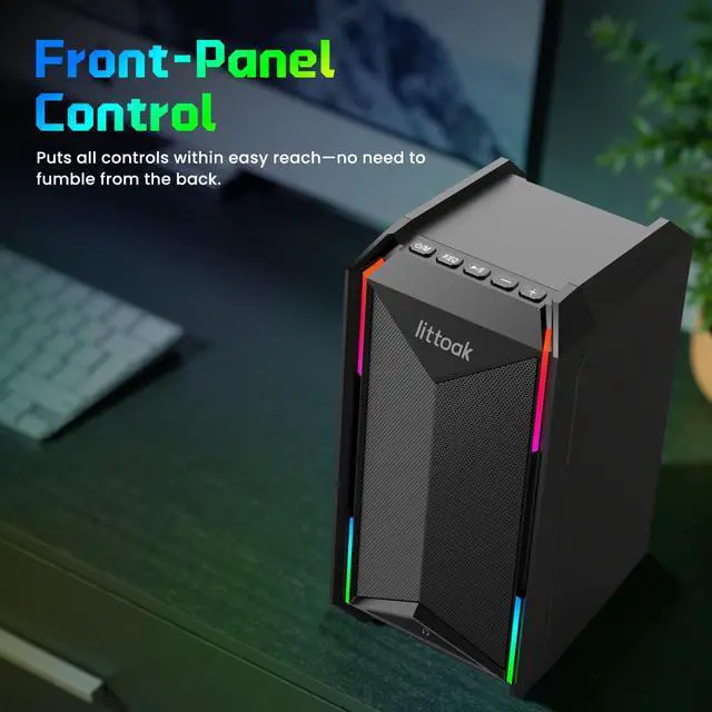Immersive RGB Lighting: 10 vibrant modes (static, music-synced) to boost gaming setups/movie nights. Sleek design matches any deskideal as small computer speakers or monitor speakers for desktop PC.