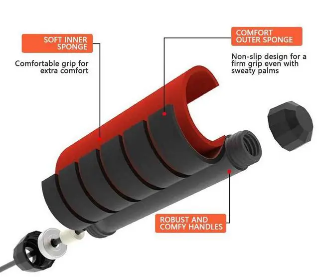 The 6-inch memory foam handle is comfortable to hold and provides a secure grip, preventing blisters or discomfort even during high-intensity training,avoids cracking or breaking.