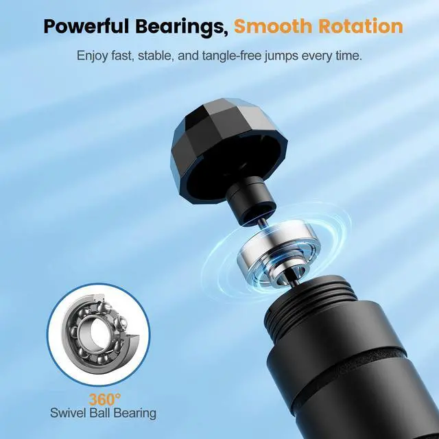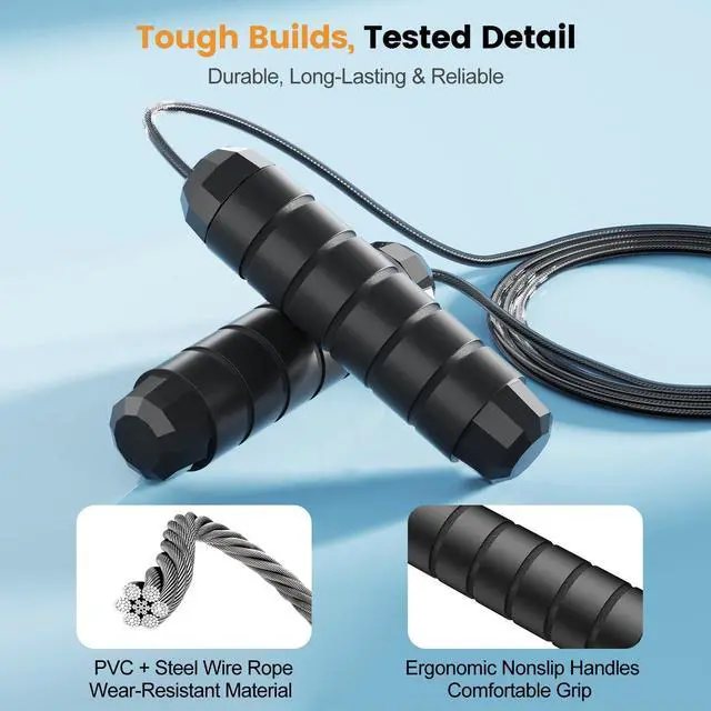 Durable Build & Tangle-Free Jump: The steel wire rope is coated with strong PVC for long-lasting durability, even during intense workouts. Premium 360-degree rotating ball bearings ensure smooth, effortless spins while preventing tangling, twisting, or knotting. Every jump feels fast, fluid, and effortless.