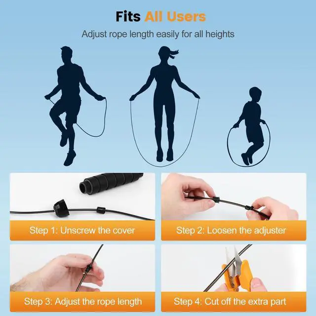Adjustable Length for All Heights: Easily customize the rope length to fit your height or preference. Designed for kids, teens, and adults, beginners or experienced jumpers, this rope supports fun, exercise, weight loss, and muscle building. Everyone can enjoy a safe and effective workout with SKIFUL equipment.