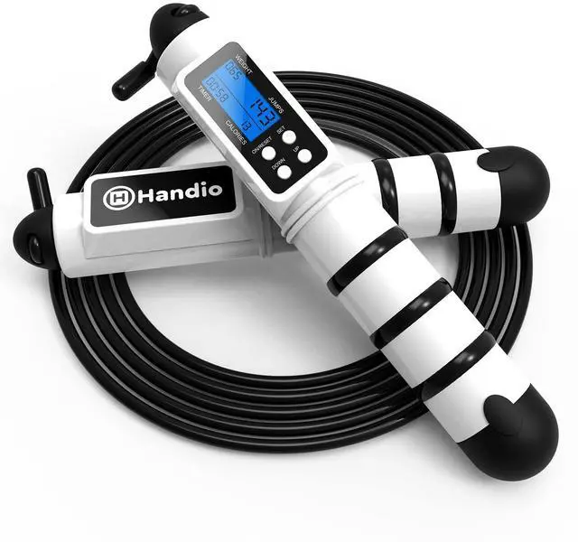 This jump rope designed with smart counter which shows time, weight, calorie and circles. Simply set your weight and it will show the number of circles you jump and the calories been burn.If screen flickers or counter fails, check battery level.