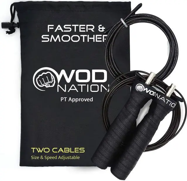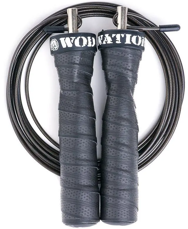 WOD Nation speed ropes feature a patented 4-bearing system to ensure the coated steel cable flows smoothly at maximum speed.