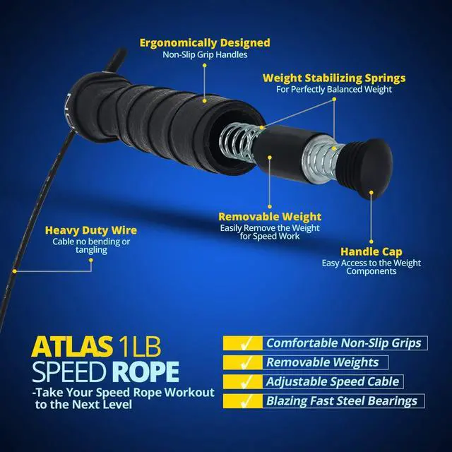 The Attack rope has a tennis racket style grip with premium grip tape so you won't lose control of your rope during intense workouts or competitions.
