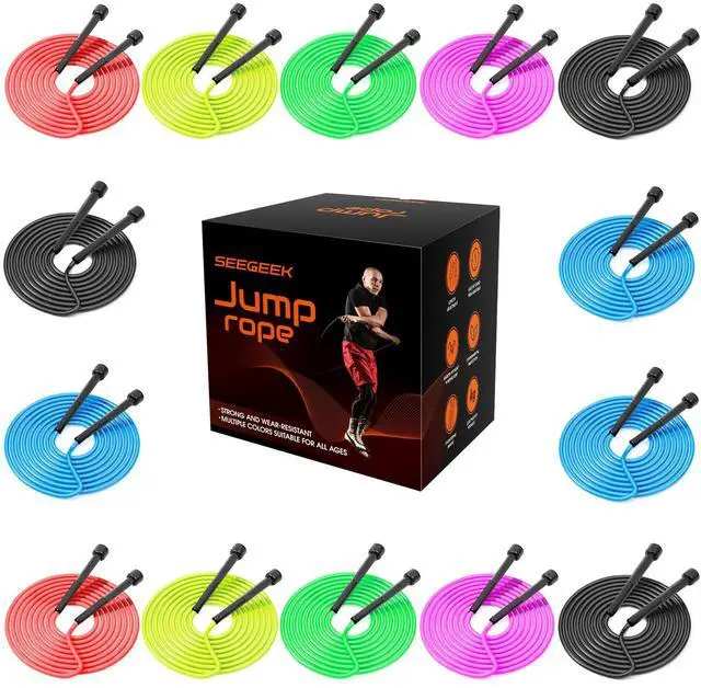 Package Include: You will receive 14 high-quality PVC skipping ropes.Three black, Three blue, Two fluorescent yellow , Two green, Two red and Two purple.You can share with your family or friends.