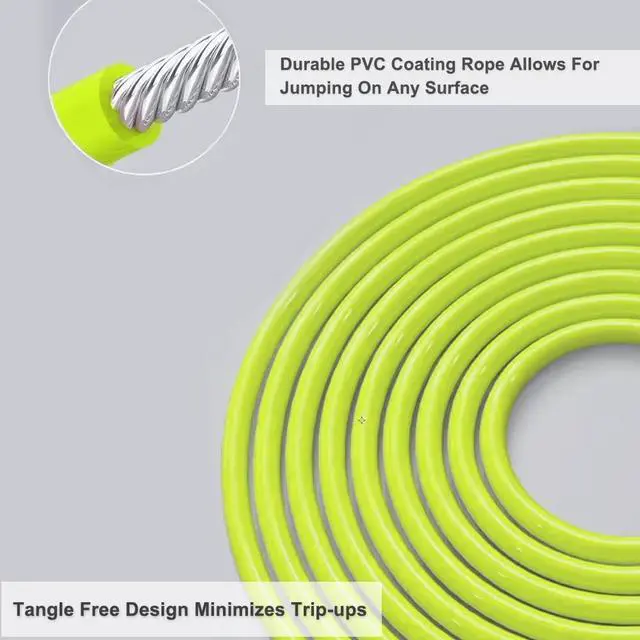 Rope Design - 6MM durable PVC coated wire. it is more durable in low temperature or high temperature. Tangle free design minimizes trip-ups.