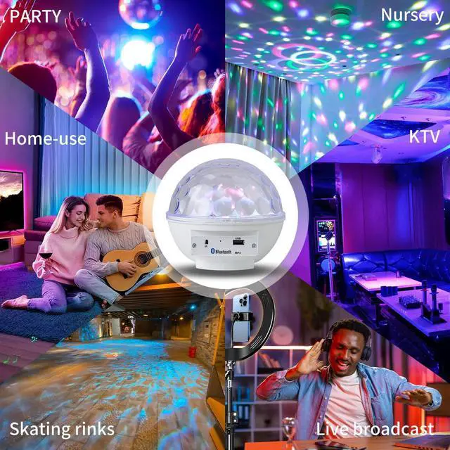 Disco Ball Lights RGB Sound Activated Strobe Rotating Party Stage Lights, Built-in Bluetooth Speaker, for Adult Home Theater,Room Decoration,Halloween Christmas Gift, Birthday Gift, Karaoke