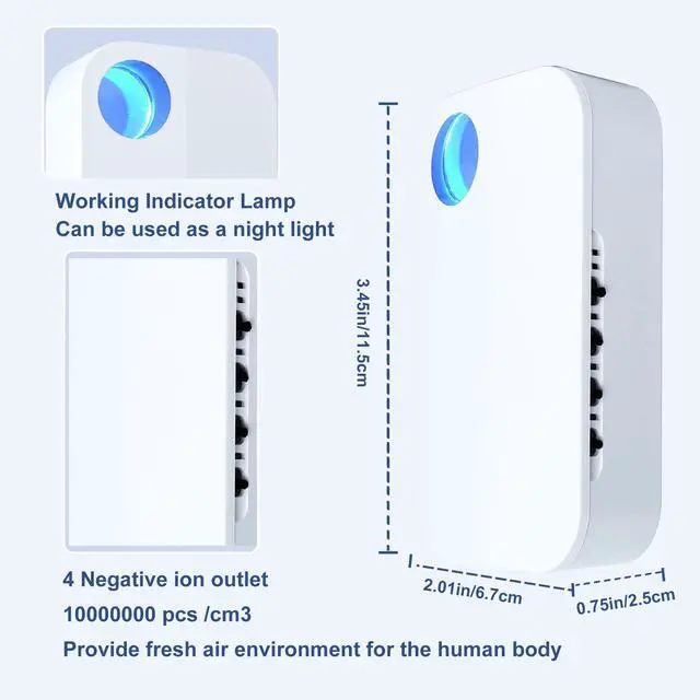 Compact and portable:The ion purifier is lightweight, small in size, and easy to carry anywhere. Plug it into any standard outlet for fresh air on the go, perfect for offices, gyms, hotels, libraries, cafes, and more. Enjoy clean air wherever you are.