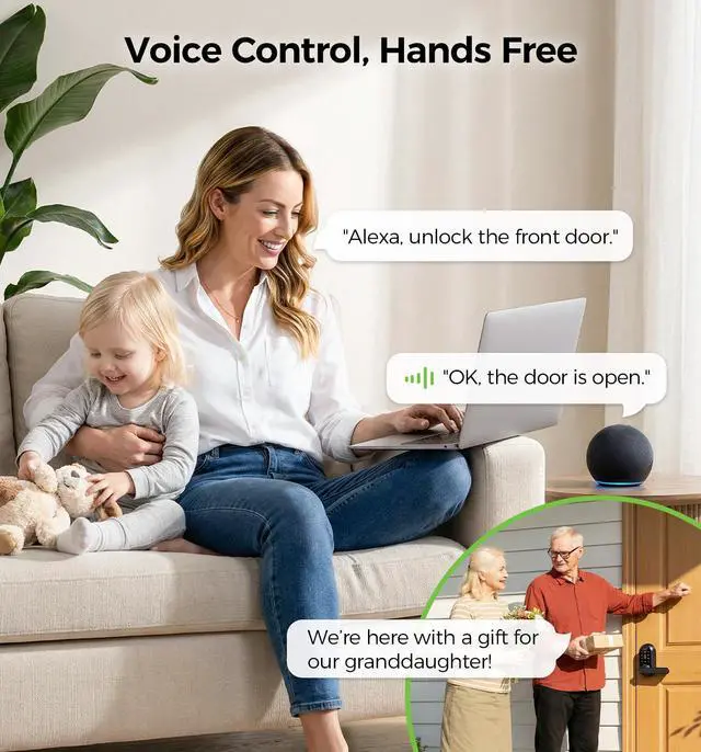 Hands-Free Voice Control Seamlessly integrate your smart lock into your smart home ecosystem. Pair the LNDU T225 with Alexa or Google Assistant to lock and unlock. Whether your hands are full with groceries or you're relaxing on the couch, managing your front door is now as easy as speaking.