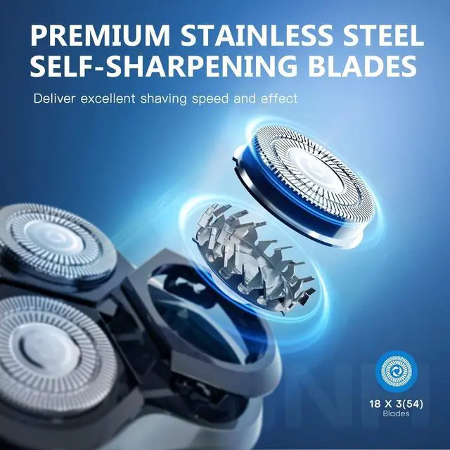 Precise Shaving System - The well-designed shaving system of premium stainless steel blades with self-sharpening function, so that it will be sharper with daily use.