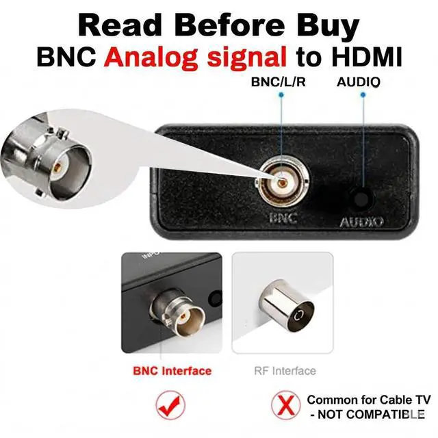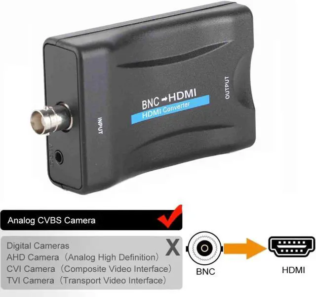 Please note: The BNC to HDMI converter is only suitable for analog cameras. Before placing an order, please confirm that your camera is not a digital camera. If you have a digital camera, this adapter will not fit your device because it can only convert analog signals to digital signals.