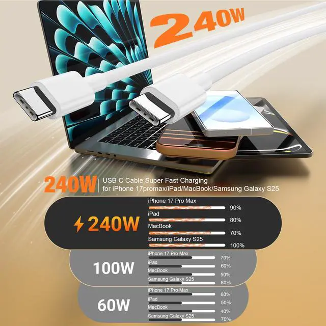 ![Alt view image 4 of 7 - 240W USB C to USB C Cable 3-Pack [3.3FT+6.6FT+6.6FT],Type C Fast Charging Cable for iPhone Air 17 16e 16 15 Pro Plus Pro Maxfor Galaxy S25/S24, for iPad Pro/Air/mini, for MacBook Pro/Air and More](https://c1.neweggimages.com/productimage/nb640/C5JMD26030408R5W151.jpg)