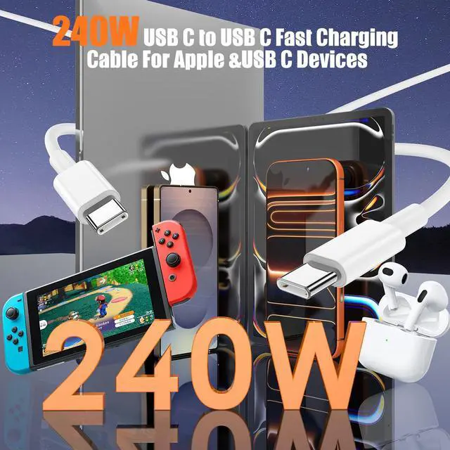 ![Alt view image 2 of 7 - 240W USB C to USB C Cable 3-Pack [3.3FT+6.6FT+6.6FT],Type C Fast Charging Cable for iPhone Air 17 16e 16 15 Pro Plus Pro Maxfor Galaxy S25/S24, for iPad Pro/Air/mini, for MacBook Pro/Air and More](https://c1.neweggimages.com/productimage/nb640/C5JMD26030408R5UFD9.jpg)