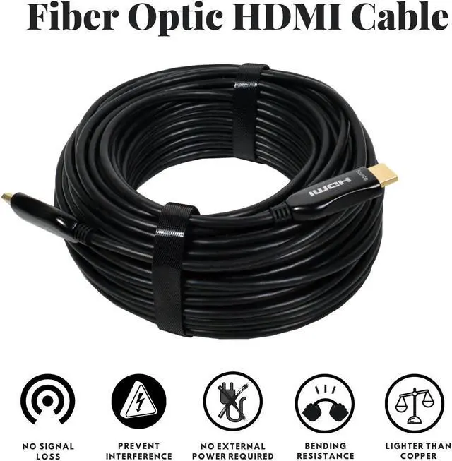 Our Super High-Speed FIBER OPTIC HDMI CABLE is perfect for all your high definition Audio and 8K UHD Video needs. You will not need to worry to get the best audio quality, because our black jacketed High definition cable covers an Ultra HD HDMI ARC with an incredible HDR, and lets not forget about the Ultra High Definition image for each and every single video you want to watch. With a capacity of 8K @60Hz HDR signals, over long distance at a 18 Gbps bandwidth transmission rate, you will never look back to regular HDMI cables.