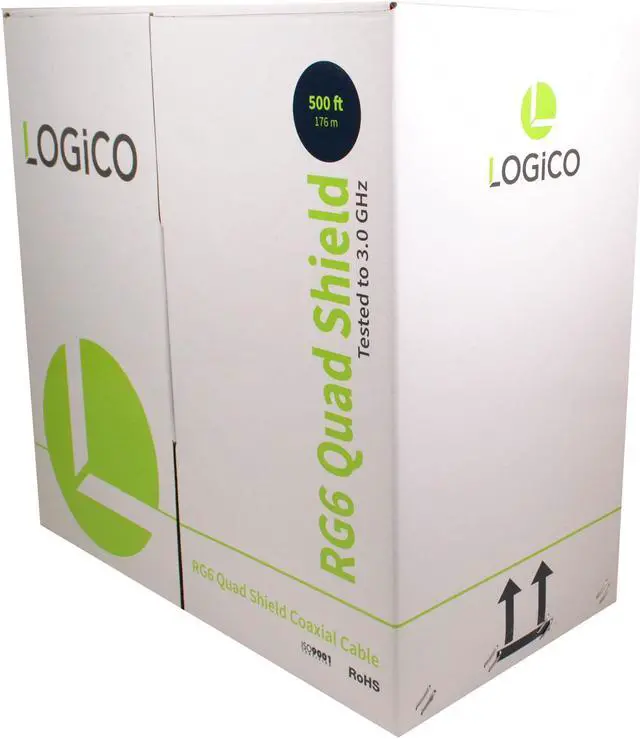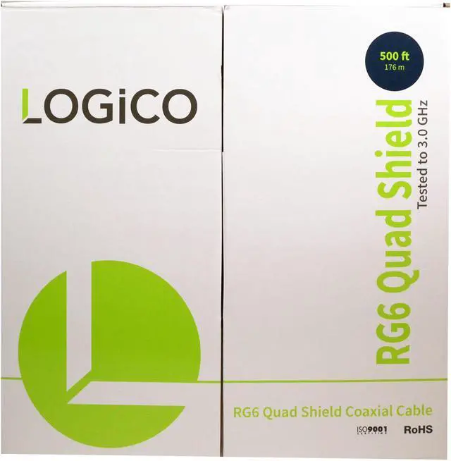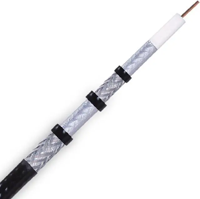 RG6U Quad Shield 3.0 GHz Coaxial Cable Digital HDTV CATV and Digital Satellite (SMATV) Applications Fully Sweep-Tested to 3000MHz True 18 AWG ( 1.02 mm) Solid Copper-Clad Steel Conductor 1st Shield - Bonded Aluminum Foil 2nd Shield- True 60% Aluminum Braid Shield 5x16x 0.16 mm 3rd Shield - Unbonded Aluminum Foil 4th True 40% Aluminum Braid Shield 4x16x 0.16 mm Gas Injected Foam Polyethylene Insulation Dielectric PVC Flame Retardant CM Rated Jacket CM/CATV ETL Listed, RoHS Compliant Sequential Length Markings on Jacket 500 Feet Reel In Box Black Color Authorized Dealer