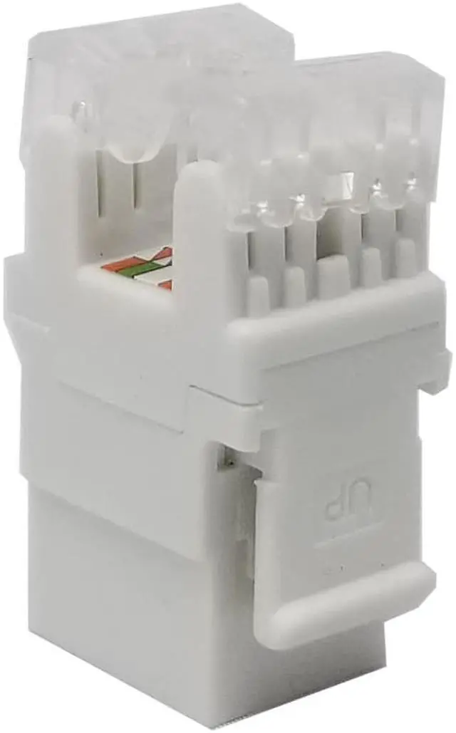 Keystone jacks are snap in modules used to mount low voltage electrical connectors into a keystone wall plate, patch panel, face plate or surface mount box. Keystone jacks allow for a clean, organized and easy connection & help evade cable cluster or visible connections.