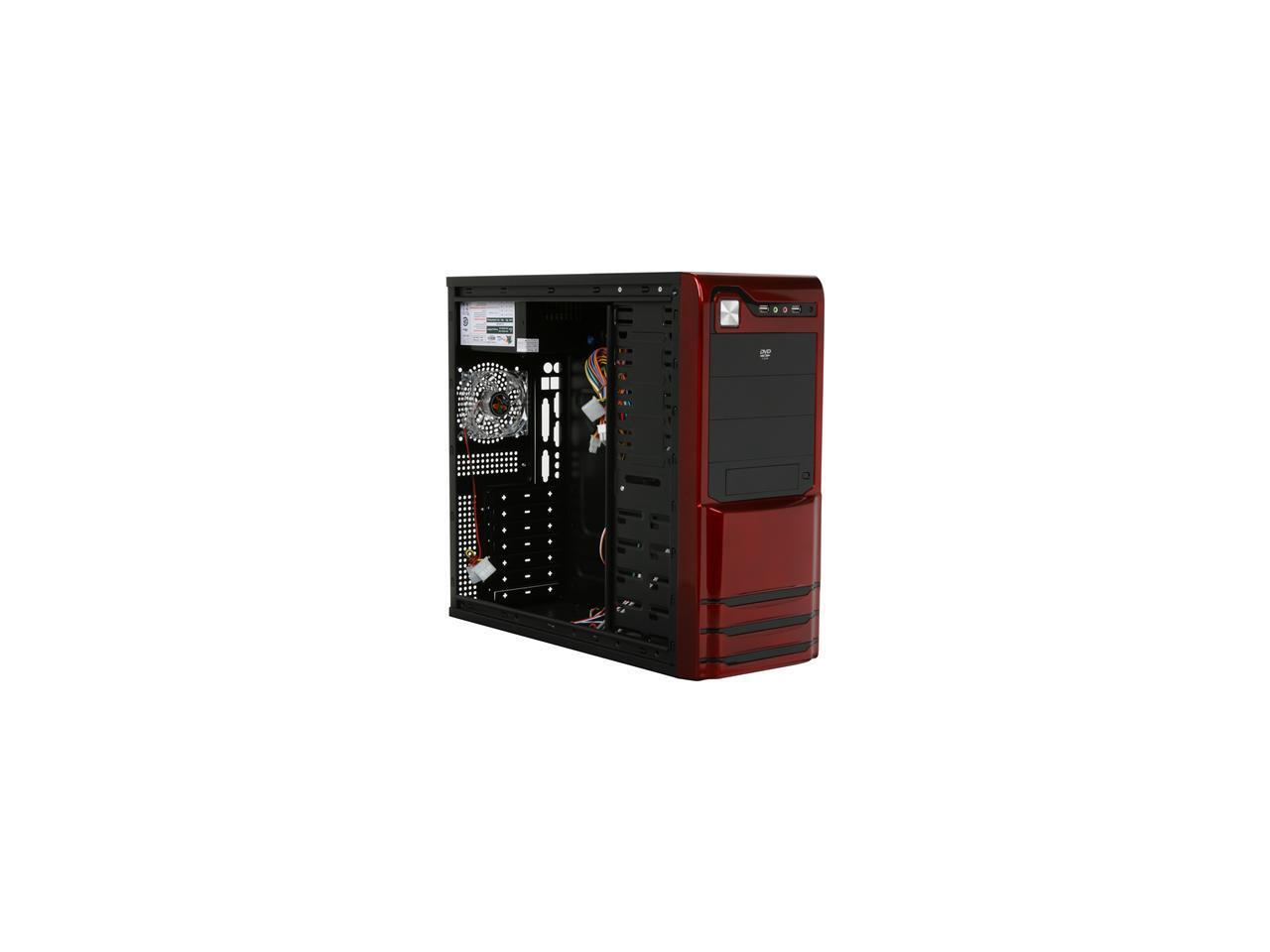 LOGISYS Computer CS308RD Red / Black Steel / Plastic ATX Mid Tower Computer Case 480W Power Supply