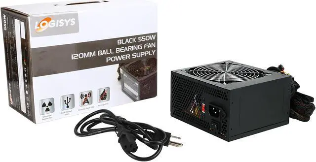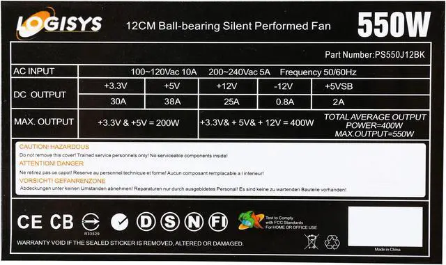 | Features | PS550J12BK is a quiet- performed dual-ball bearing 12CM fan power supply, painted with no- finger-print black coating. The power supply has one 20/24 MB connector, Three SATA connectors, one P4 connector, one FDD connector and four 4pin Molex connectors, all the wires are sleeved in black mesh neatly. |