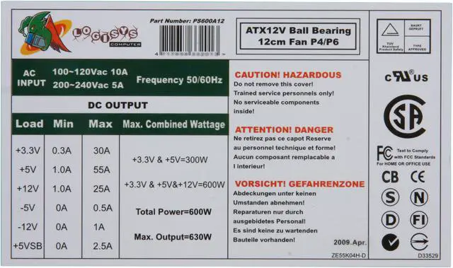 | Output | +3.3V@30A, +5V@55A, +12V@25A, [email protected], [email protected], [email protected] |