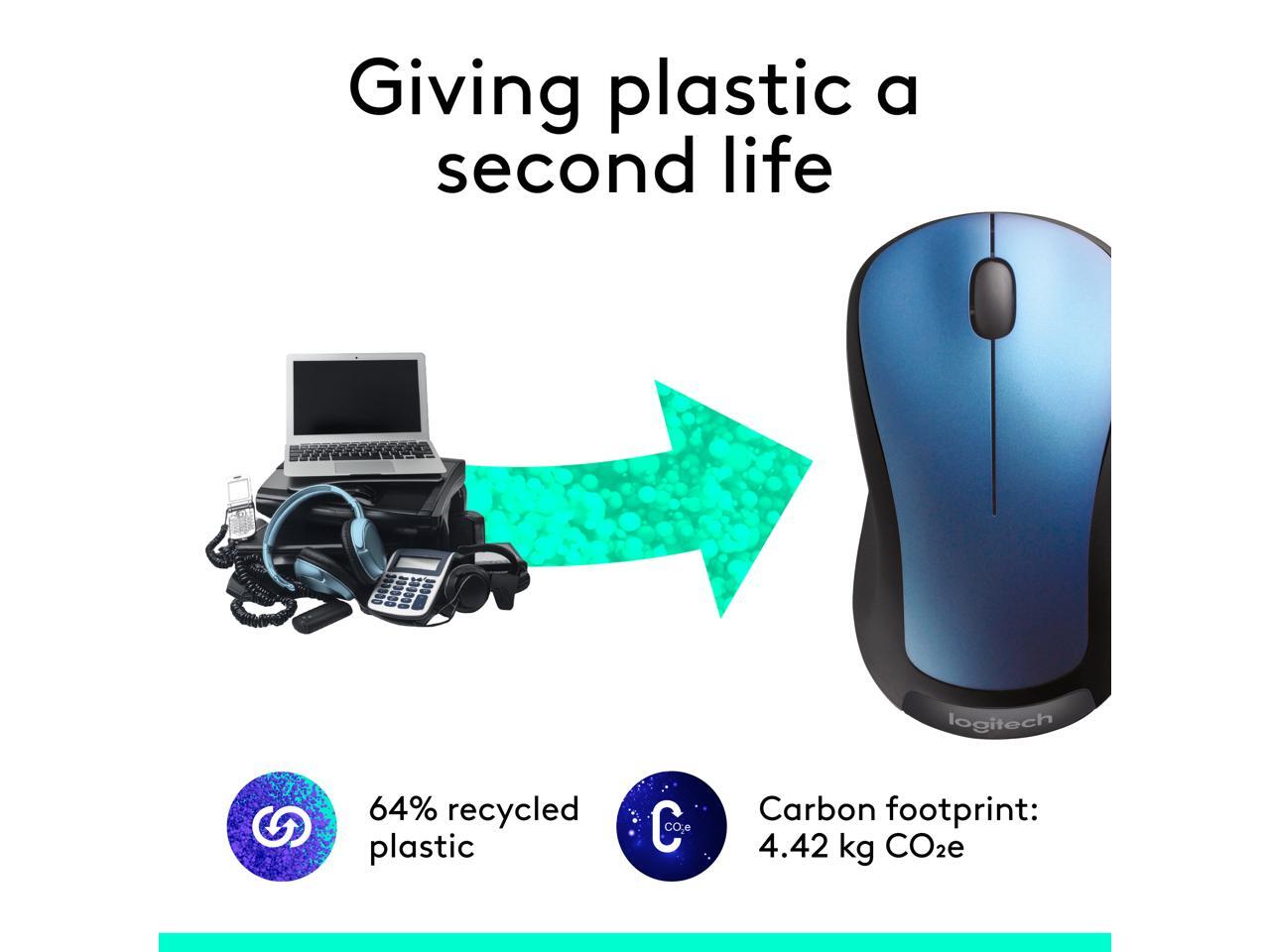 - Plastic parts in M310 include certified post-consumer recycled plastic (77% for Black and Dark Grey, 64% to Peacock Blue and Flame Red Gloss)*