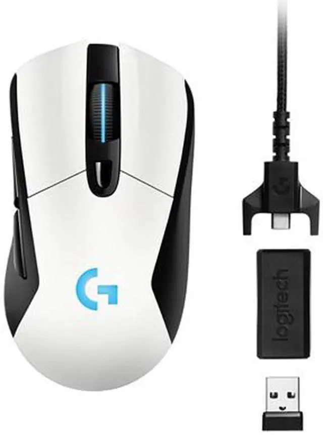 FEATURES LIGHTSPEED WIRELESSSuperior wireless technology G703 is equipped with the same wireless technology pioneered by Logitech in the award-winning G900 Chaos Spectrum. With a 1 ms report rate and our end-to-end optimized wireless connectivity, G703 delivers incredible responsiveness for competition-level twitch targeting. GAMING-GRADE PERFORMANCE8x faster than standard mice With G703, the game gets better and so do you. G703 is built for gaming speed, accuracy and endurance. With a 1ms report rate whether wired or wireless, G703 is up to 8x faster than standard mice-which means when the mouse is moved or clicked, the response is near-instantaneous. ELEVATE YOUR ACCURACYAim with confidence Become more accurate than you've ever been before. The G703 features the PMW3366 - use...Pointing Device Connectivity Technology: WirelessPointing Device Wireless Technology: Radio FrequencyMovement Detection: PMW3366Movement Resolution: 12000 dpiNumber of Total Buttons: 6Scroller Type: Scroll WheelErgonomic Fit: SymmetricalPointing Device Host Interface: USBColor: WhiteHeight: 1.7Width: 2.7"Depth: 4.9"Weight (Approximate): 3.77 ozPackage Contents: G703 Lightspeed Wireless Gaming Mouse Charging/Data Cable Wireless USB Adapter 10g Optional Weight User Documentation Device Supported: ComputerEnvironmentally Friendly: YesEnvironmental Certification: RoHSEnvironmental Certification: WEEELimited Warranty: 2 YearPackage Contents G703 Lightspeed Wireless Gaming Mouse Charging/Data Cable Wireless USB Adapter 10g Optional Weight User Documentation "