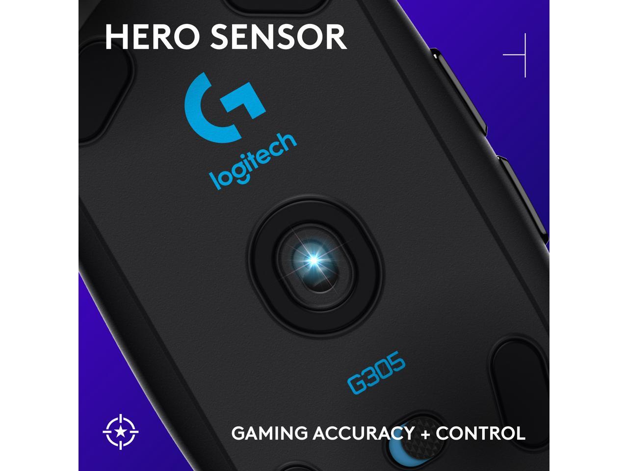 Logitech G305 LIGHTSPEED Wireless Gaming Mouse, Hero 12K Sensor, 12,000 DPI, Lightweight, 6 Programmable Buttons, 250h Battery Life, On-Board Memory, PC/Mac - Black