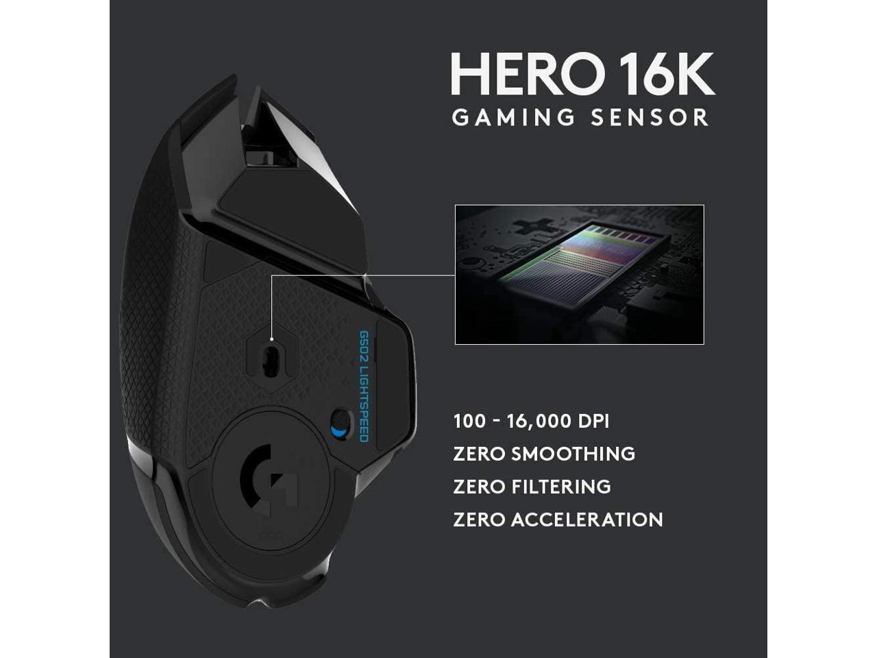 Logitech G502 Lightspeed Wireless 11 Buttons Optical Gaming Mouse 910-005565 with Hero 25K Sensor, Supports Power Play & LIGHTSYNC RGB Lighting - Black