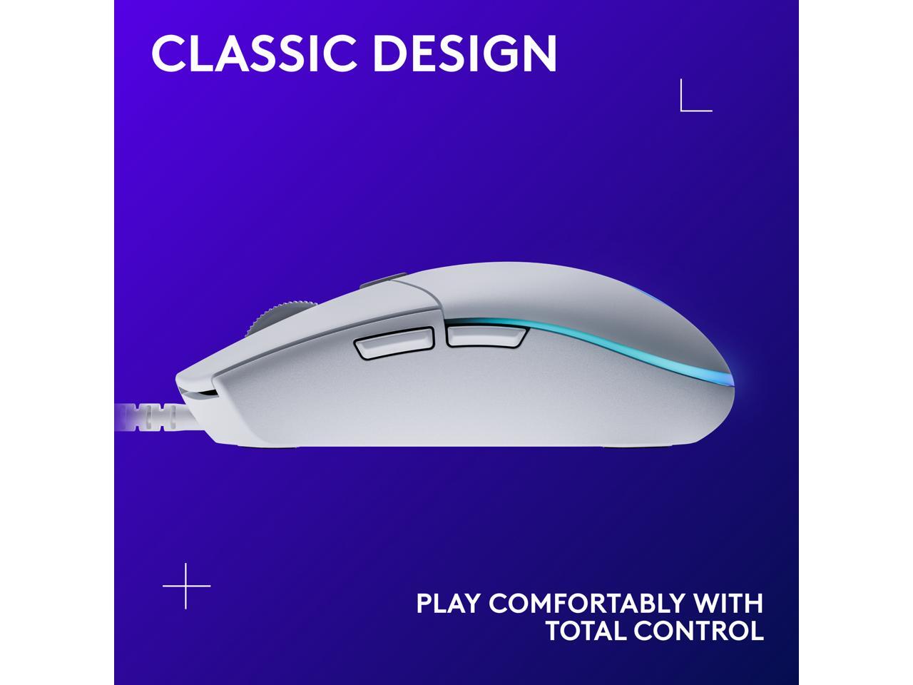 Logitech G203 Wired Gaming Mouse, 8,000 DPI, Rainbow Optical Effect LIGHTSYNC RGB, 6 Programmable Buttons, On-Board Memory, Screen Mapping, PC/Mac Computer and Laptop Compatible - White