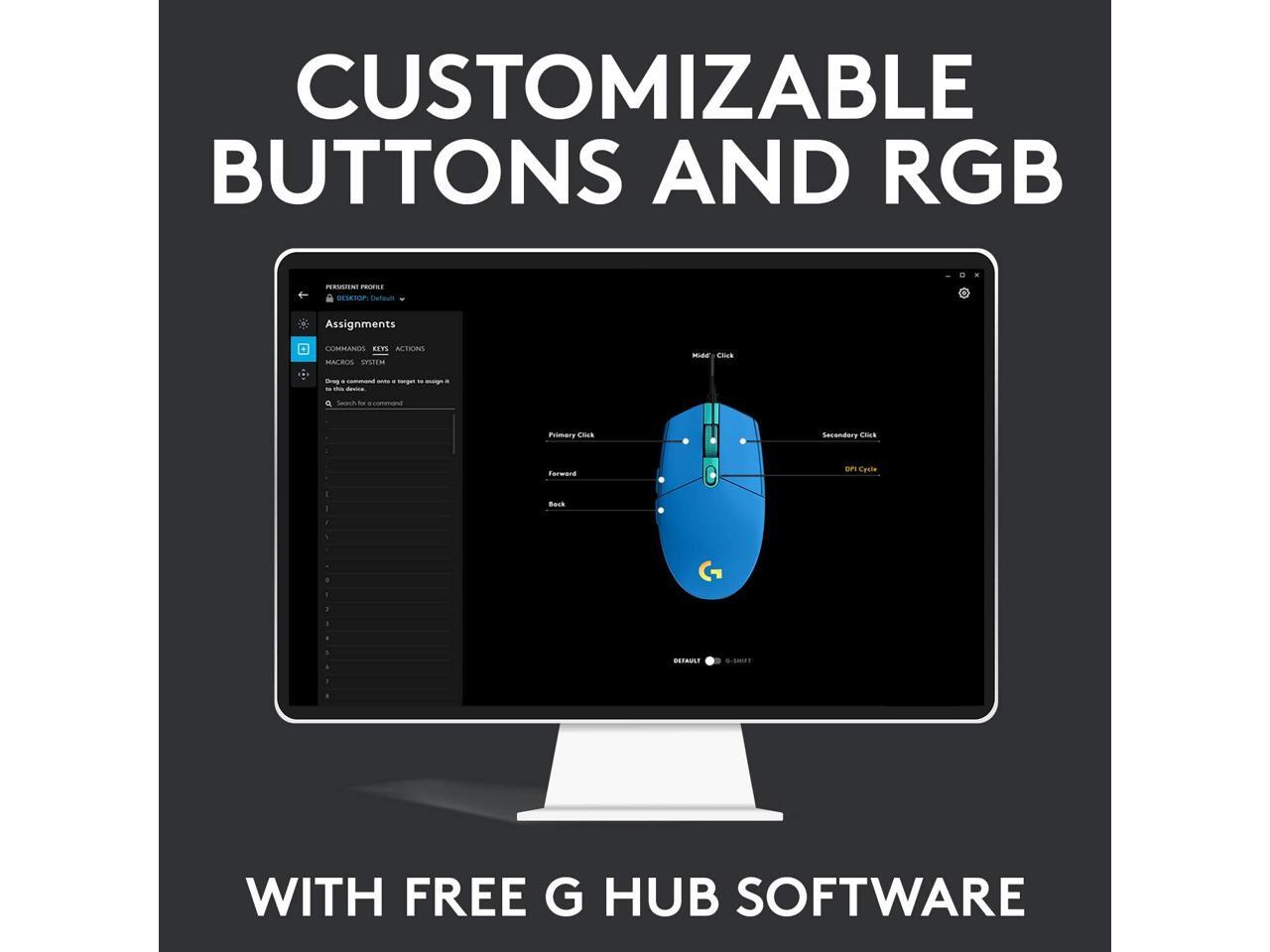 • Play comfortably and with total control. The classic and simple 6-button layout and classic gaming shape is a comfortable time-tested and loved design. Each button can be customized using Logitech G HUB software to simplify tasks.