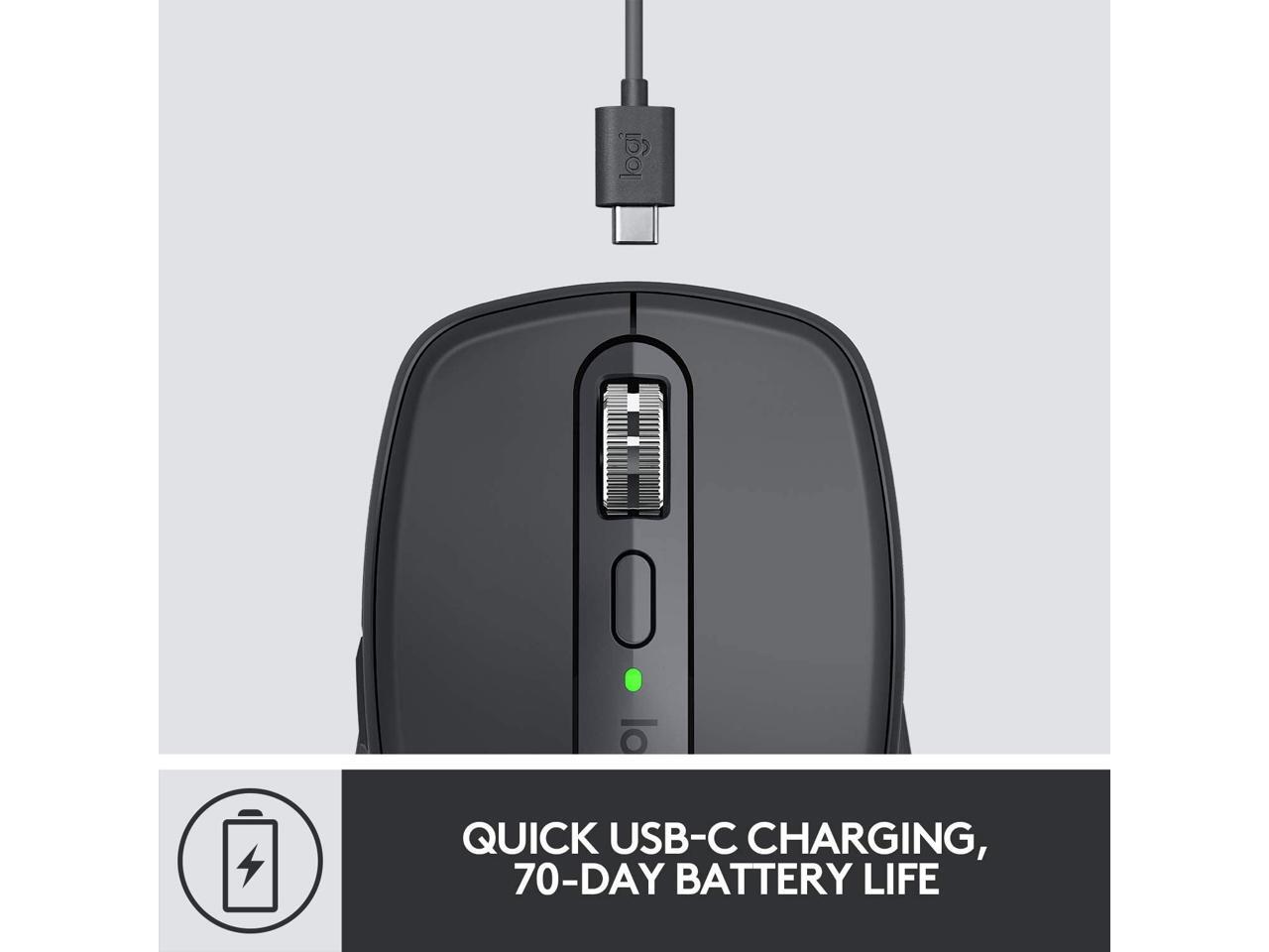Logitech MX Anywhere 3 Compact Performance Mouse, Wireless, Comfort, Fast Scrolling, Any Surface, Portable, 4000DPI, Customizable Buttons, USB-C, Bluetooth - Black
