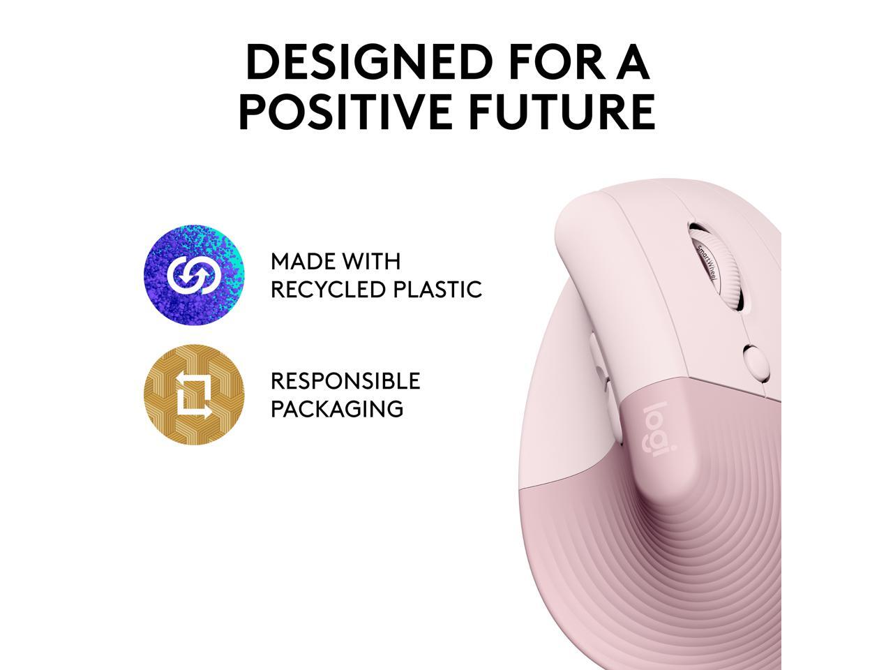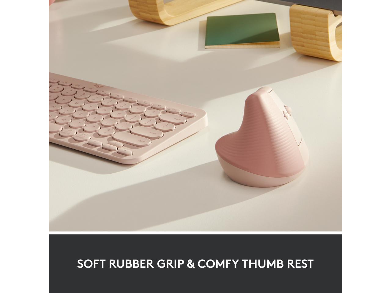 Logitech Lift Vertical Ergonomic Mouse, Wireless, Bluetooth or Logi Bolt USB receiver, Quiet clicks, 4 buttons, compatible with Windows/macOS/iPadOS, Laptop, PC - Rose
