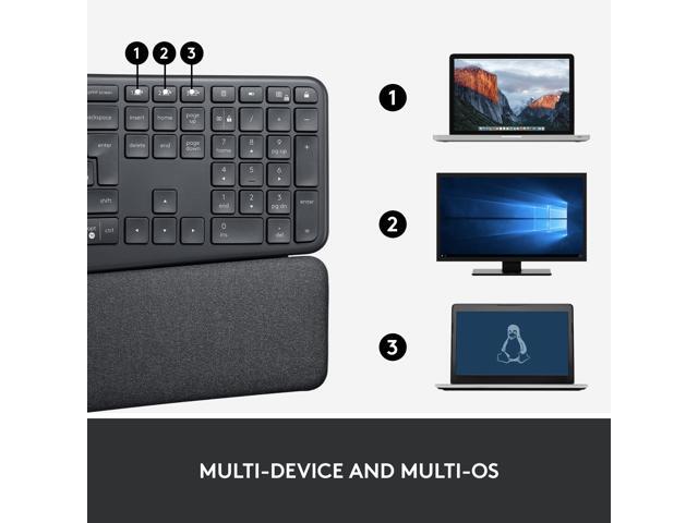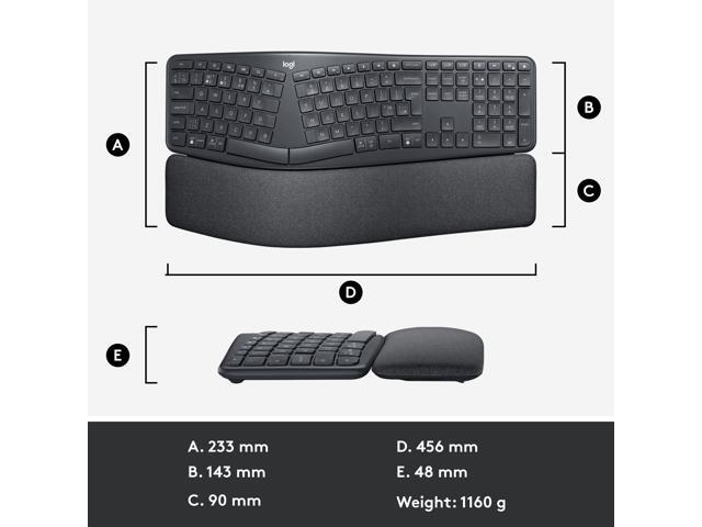 - Split, Curved Design: Type more naturally with an ergonomic keyframe that improves typing posture. The sloping keyboard reduces muscle strain on your wrists and forearms.