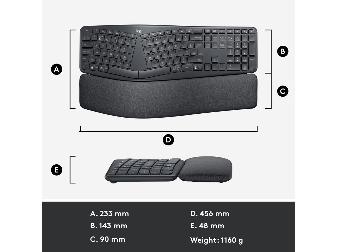 Logitech Ergo K860 Split Wireless Keyboard for Business - Ergonomic Design, Secured Logi Bolt Technology, Bluetooth, Globally Certified, Windows/Mac/Chrome/Linux - Graphite