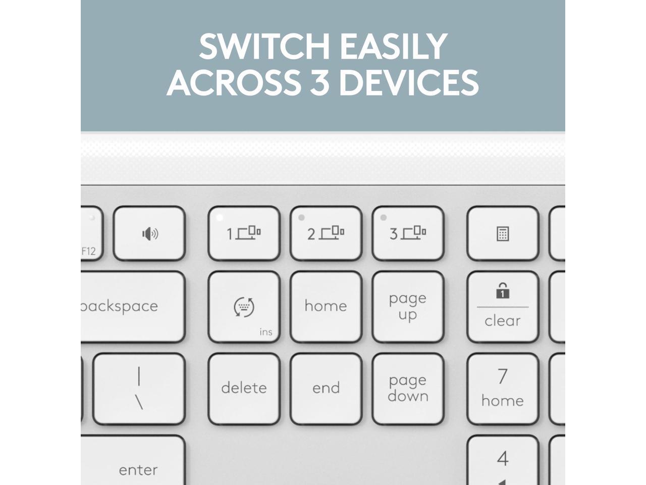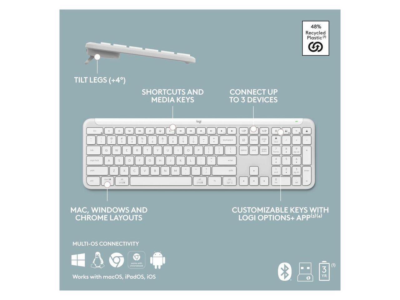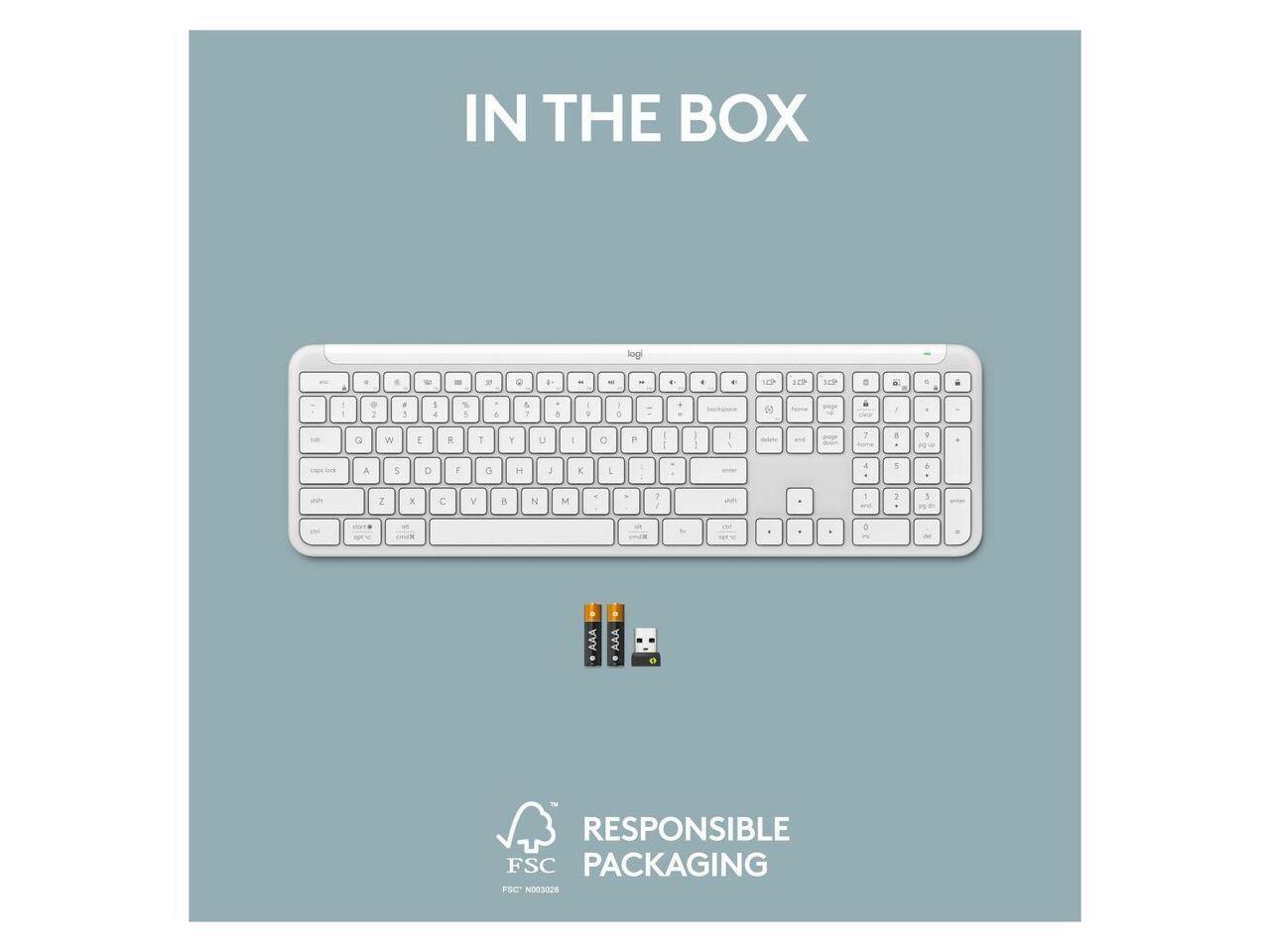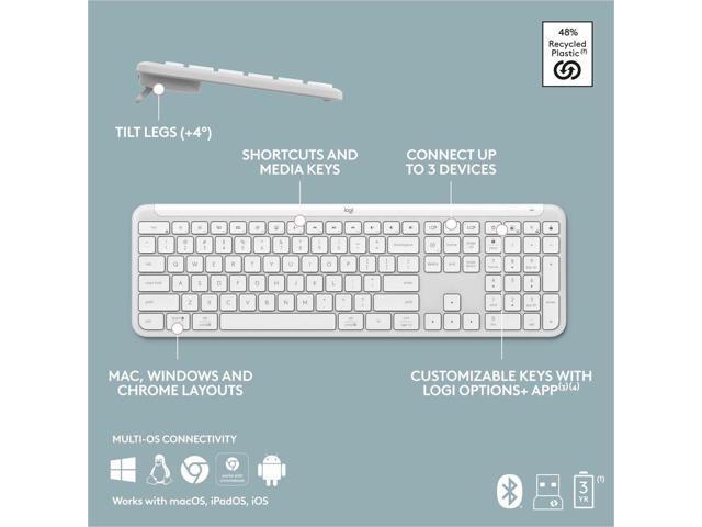 Logitech Signature Slim K950 Wireless Keyboard, Sleek Design, Switch Typing Between Devices, Quiet Typing, Off-white - Wireless Connectivity - Bluetooth - 5.1 - 32.81 ft - USB Type A Interface - Home,