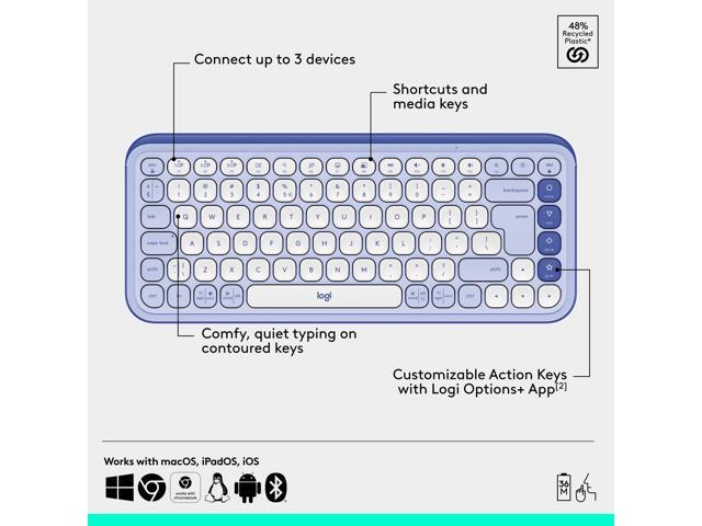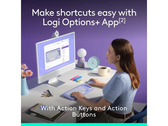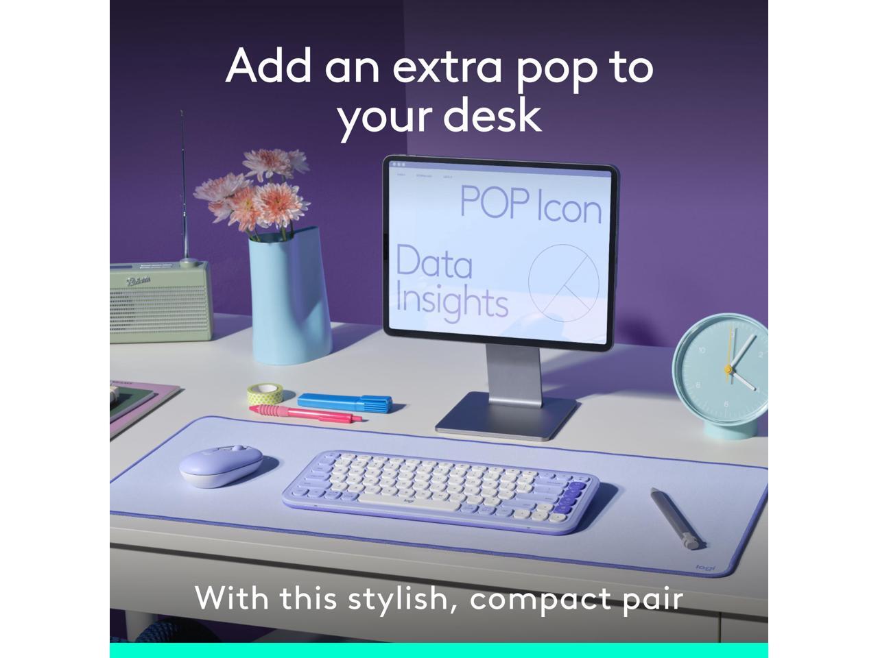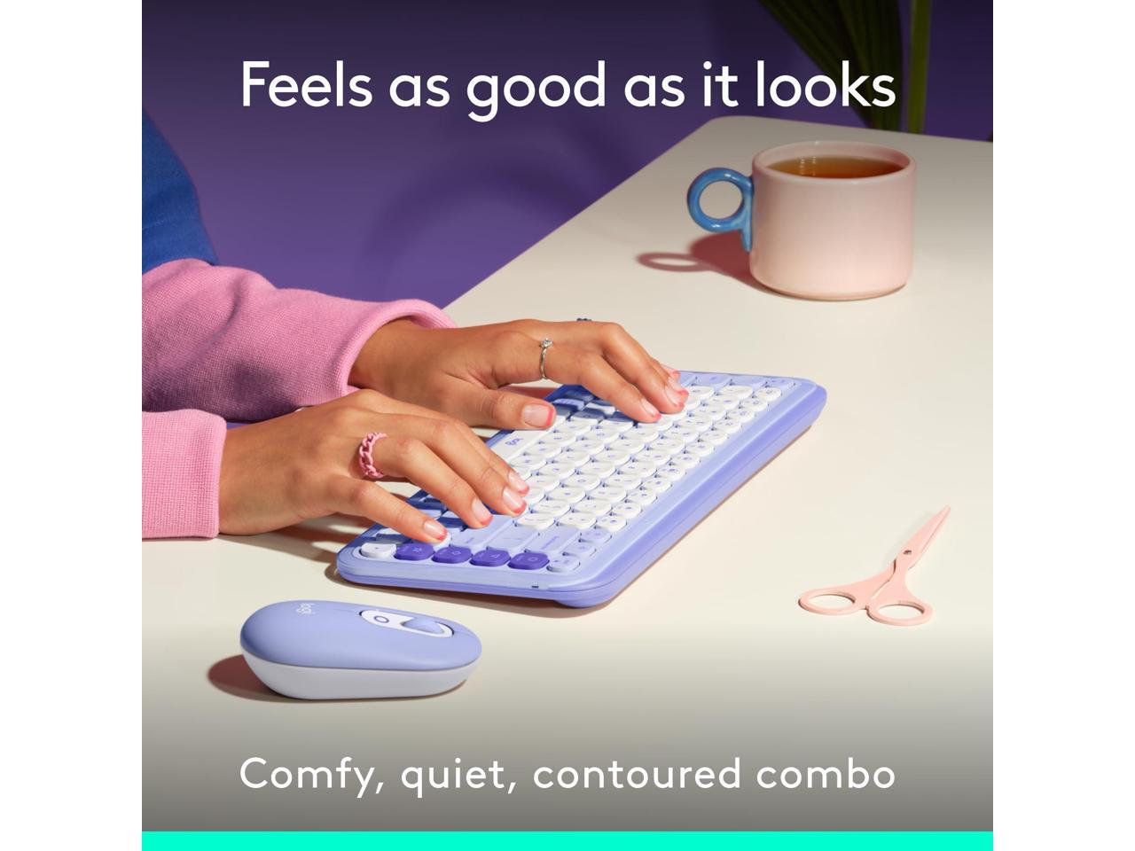 Logitech POP ICON Bluetooth Keyboard/Mouse Combo, Lilac & Off-White 920-013043