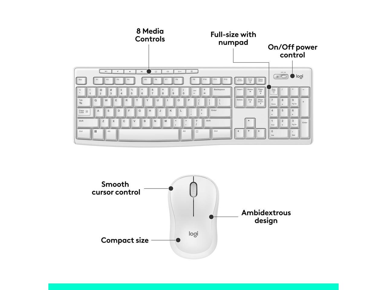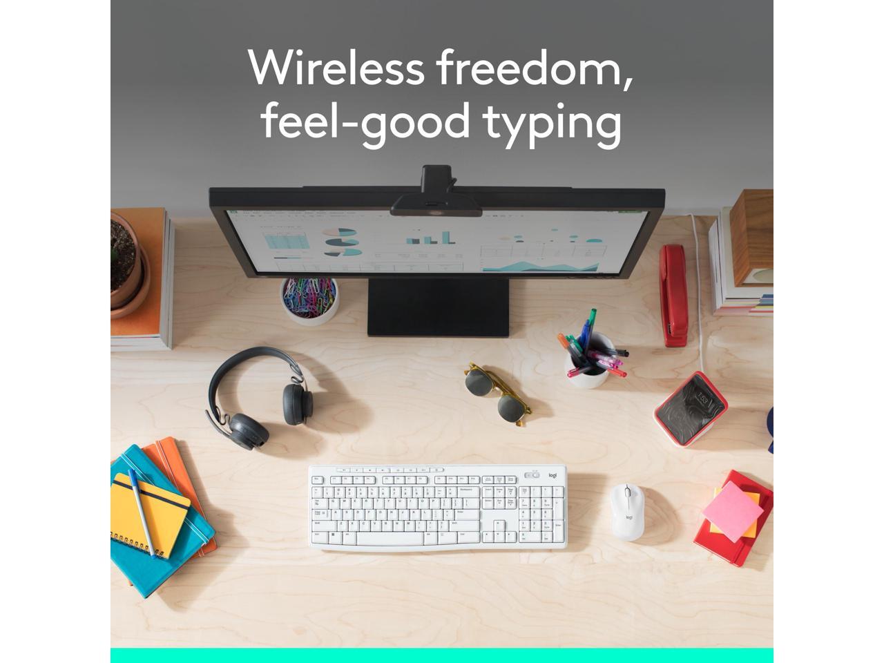 Logitech MK270 Wireless Keyboard and Mouse Combo - USB Wireless RF 2.40 GHz Keyboard - English - Off White - USB Wireless RF Mouse - Optical - 3 Button - Scroll Wheel - Off White - Media Control, On/O