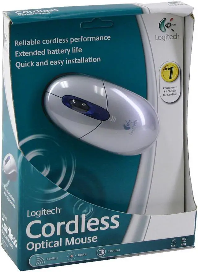 Free yourself from snagged and tangled mouse cords with the Logitech Cordless Optical Mouse. Setting it up is easy - just plug the receiver into your PC or Mac and you're ready to go. Its reliable wireless technology works within a 6-foot range so you're free to move about your desk. This mouse also features smooth, maintenance-free optical tracking, a convenient scroll wheel, and Logitech's proprietary power management technology for extended battery life. And it's all wrapped up in a sleek, comfortable design.