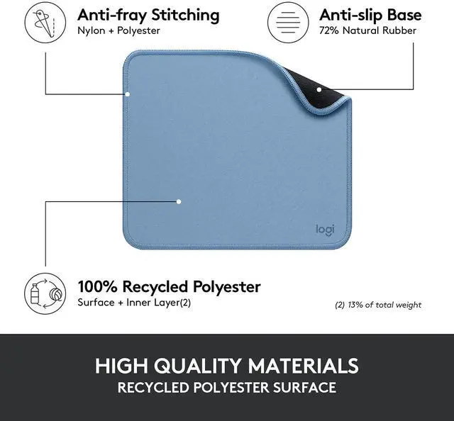 The Logitech Studio Series mouse pad is a soft, smooth, nonslip mouse pad that lets you glide away with your favorite Logitech mouse. The fine weave cuts the friction, so your mouse glides effortlessly and silently, while the spill-proof coating withstands accidental mishaps. The rubber anti-slip base prevents sliding on any surface, keeping a firm hold on your desk no matter what. Fresh color and modern design make it the perfect accessory for your Logitech mouse.