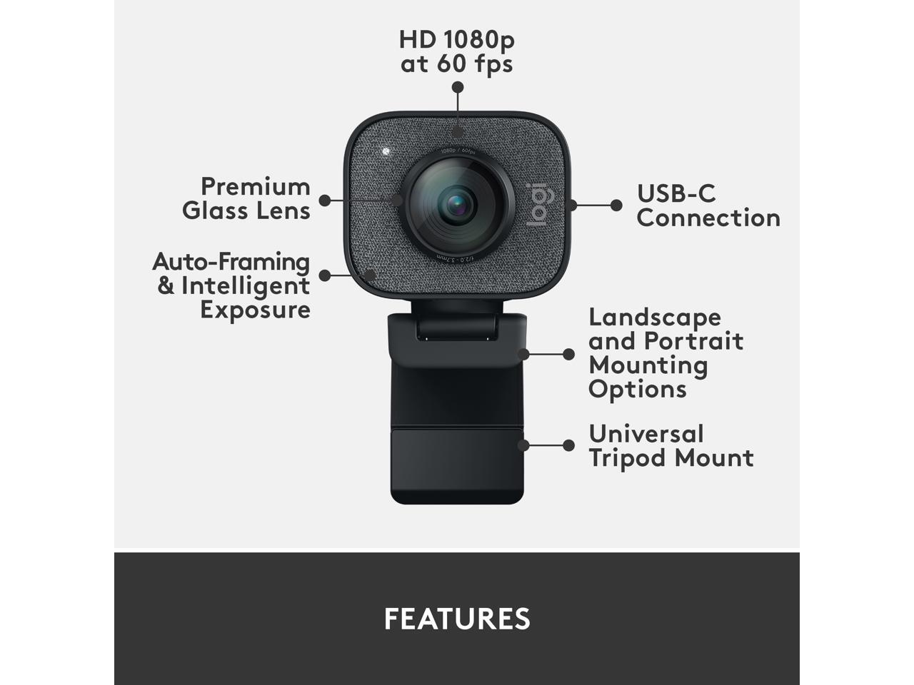 Logitech for Creators StreamCam Premium Webcam for Streaming and Content Creation, Full HD 1080p 60 fps, Premium Glass Lens, Smart Auto-Focus, for PC/Mac – Graphite