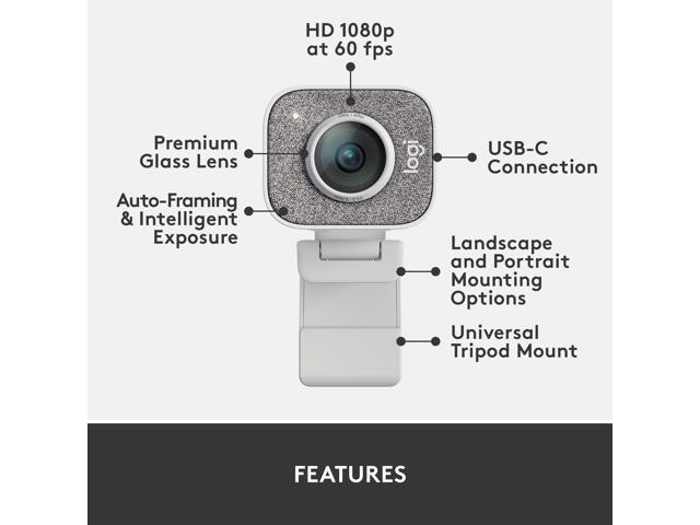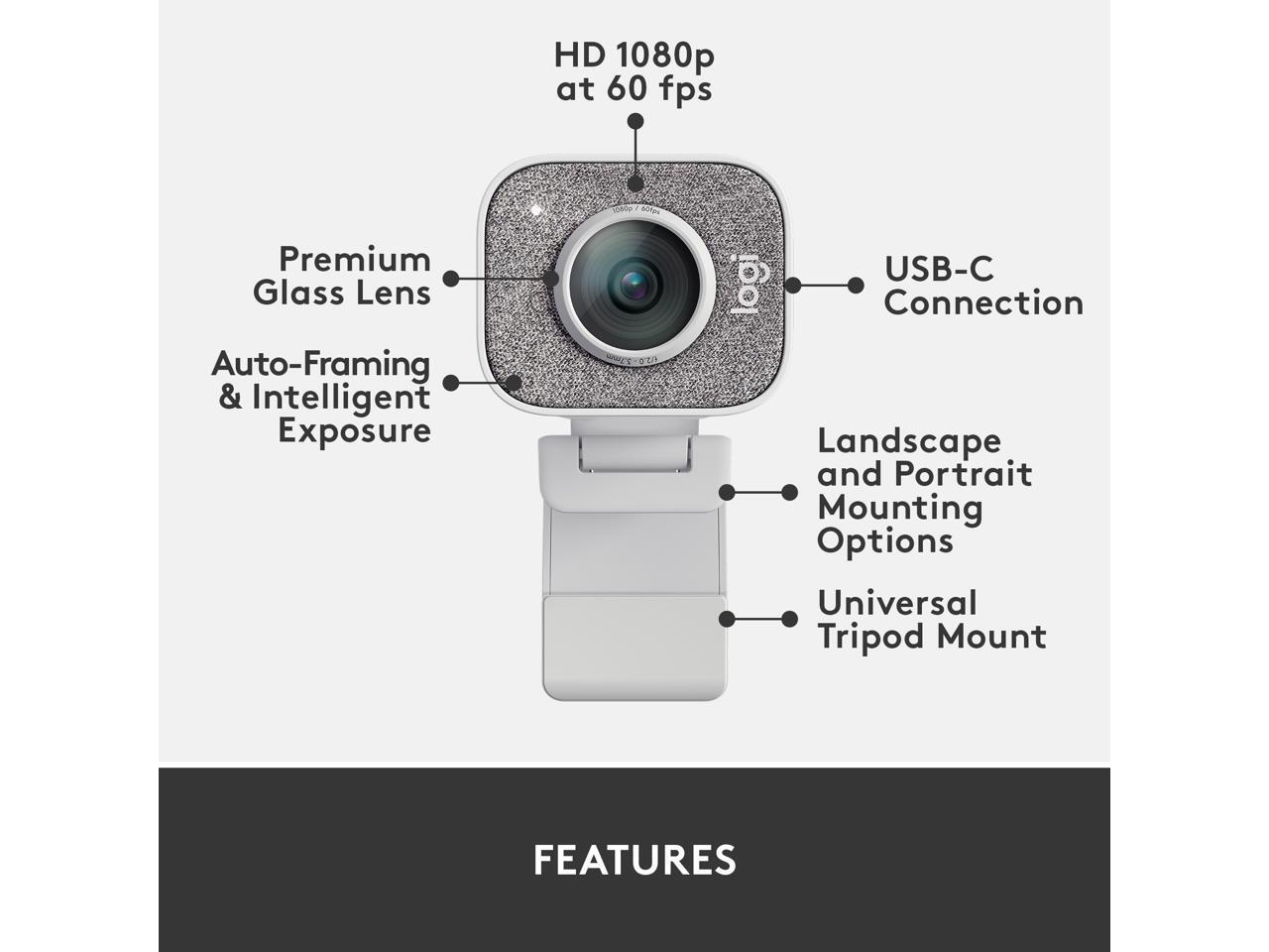 Logitech for Creators StreamCam Webcam for Streaming and Content Creation, Full HD 1080p 60 fps, Premium Glass Lens, Smart Auto-Focus, for PC/Mac - White