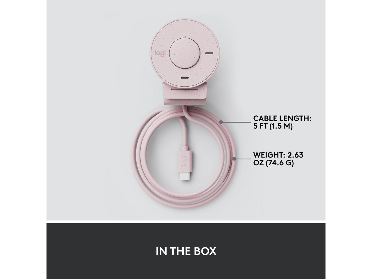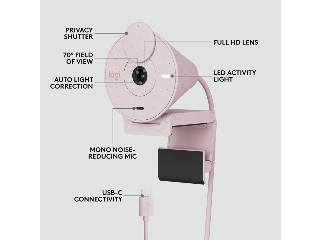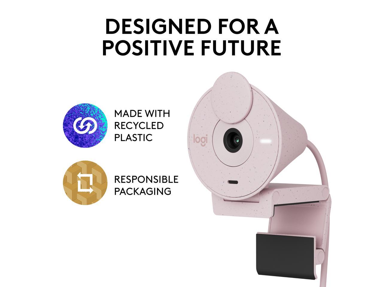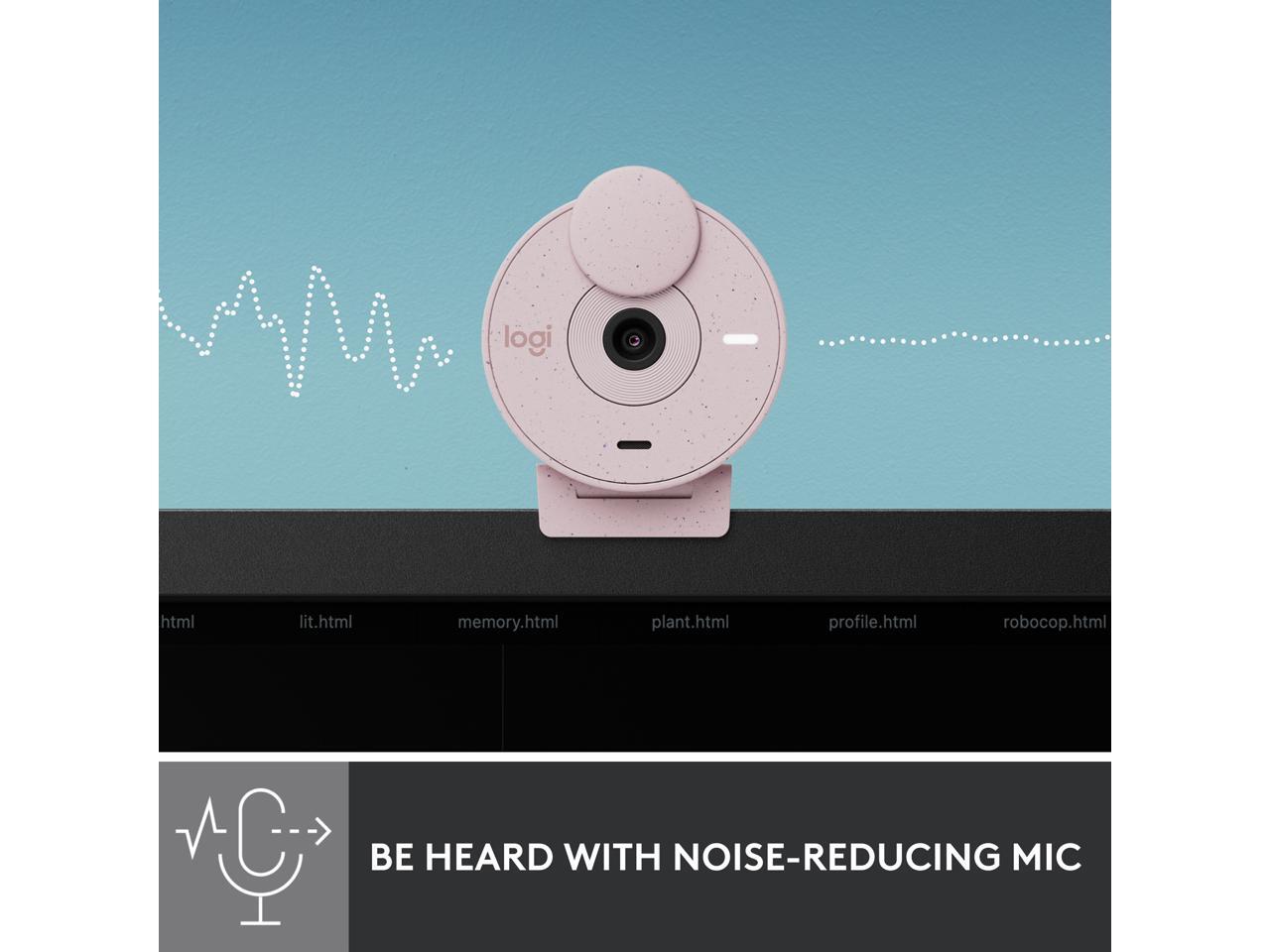 Logitech Brio 300 Full HD Webcam with Privacy Shutter, Noise Reduction Microphone, USB-C, certified for Zoom, Microsoft Teams, Google Meet, Auto Light Correction, Rose