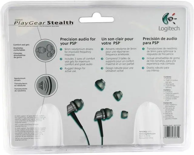 | Features | Get powerful and precise audio from your PSP without bulky headphones. Logitech PlayGear Stealth earbuds use 9mm neodymium drivers to blast out serious audio, in a compact size that begs to be taken on the road! Customized fit. No two ears are created equal, so we´ve included three sizes of comfort seal gels to choose from, for a personalized fit that keeps sound in and noise out. Dynamic sound. Designed with gaming and music in mind, their dynamic range lets you hear every crash and explosion without disturbing others. Small but tough. Styled to match the PlayStation Portable, the rugged design makes these earbuds a perfect replacement for bulky headphones. Three sizes of comfort seal gels for maximum comfort 9mm neodymium drivers for dynamic sound Rugged design for active use 2-year limited warranty |